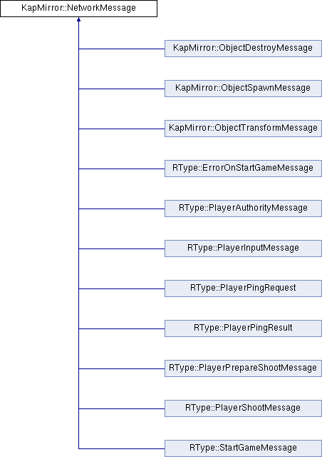Implemented in KapMirror::ObjectTransformMessage, RType::PlayerPingResult, KapMirror::ObjectDestroyMessage, RType::PlayerPingRequest, RType::ErrorOnStartGameMessage, RType::StartGameMessage, RType::PlayerAuthorityMessage, RType::PlayerShootMessage, RType::PlayerPrepareShootMessage, KapMirror::ObjectSpawnMessage, and RType::PlayerInputMessage.